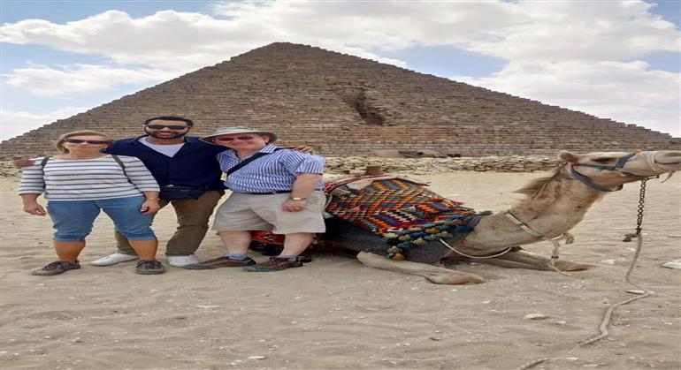 This morning, tour the Giza Plateau, site of the pyramids of Mycerinus and Chefren as well as the Great Pyramid. Built in the Fourth Dynasty (approximately 2690 BC), it is the only survivor of the Seven Wonders of the Ancient World. Explore the interior of one of these legendary pyramids and Ride Like a Local on camel back. visit  the Great Sphinx. After lunch at a local restaurant, enjoy your afternoon at leisure. Tonight, gather for a welcome dinner.